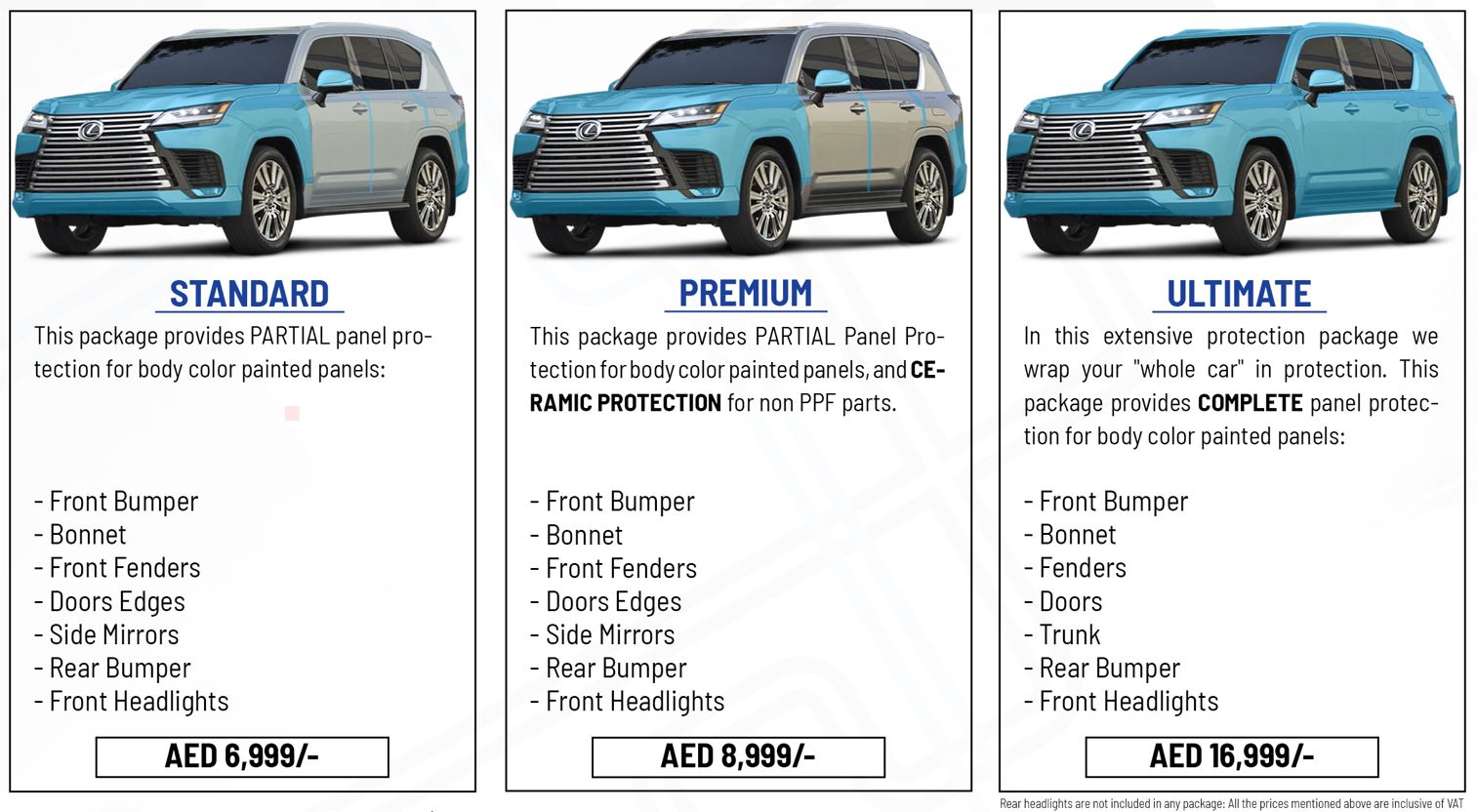 All packages come with 10 years of PPF warranty*, Free fabric/leather protection & after care cleaning kit.